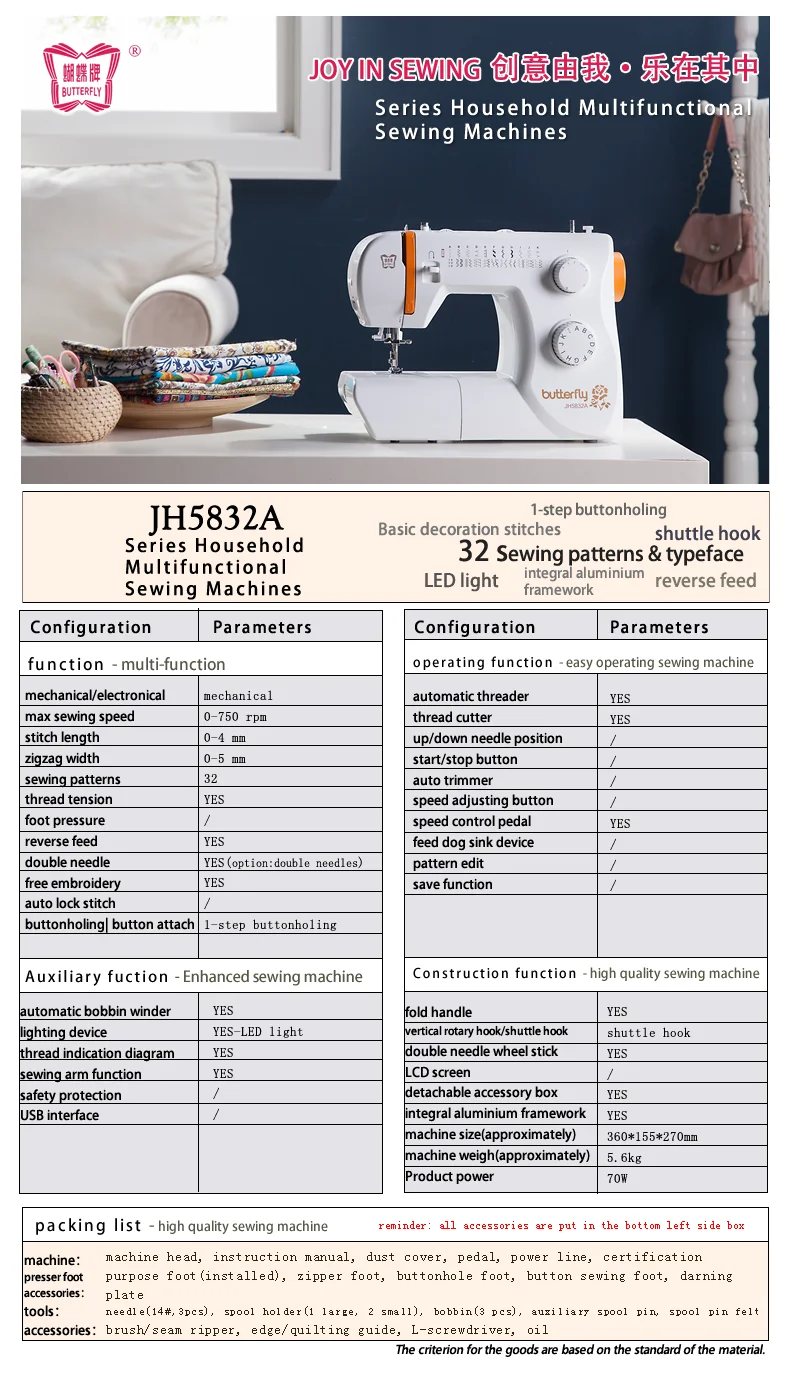 Butterfly Sewing Machine Jh5832a Small Household Sewing Machine Locks Edge To Eat Thick Multi Function Electric Sewing Machine Sewing Machines Aliexpress